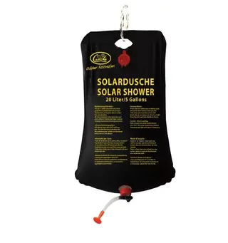 Pumpen plasseres enkelt i en vannfylt bøtte eller lignende, slås på, og dusjmoroen kan begynne - batteriet varer i opptil en knapp time.